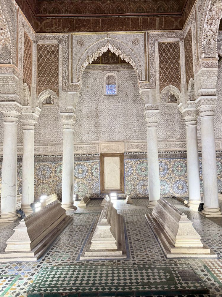 马拉喀什有历史遗迹。1578年,萨德王朝(Saadi Dynasty) 打赢了三王之战(Battle of the Three Kings, or Battle of Alcácer Quibir), 后果之一是葡萄牙国王战死导致了葡萄牙和西班牙合并。后果之二是苏丹为庆祝胜利从欧州进口了石料造了美仑美奂的宫殿。 王朝灭亡后, 宫殿被狠人苏丹穆莱扒的一瓦不剩, 只剩土芯。 萨德苏丹陵墓倒是保存完好,被雪藏了很久。