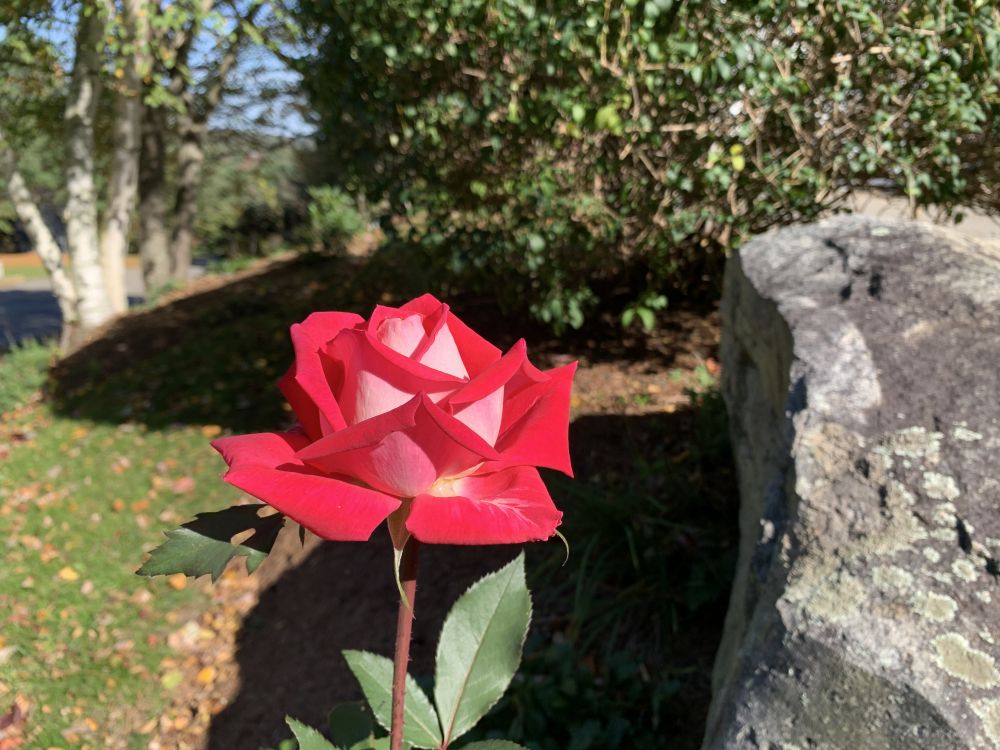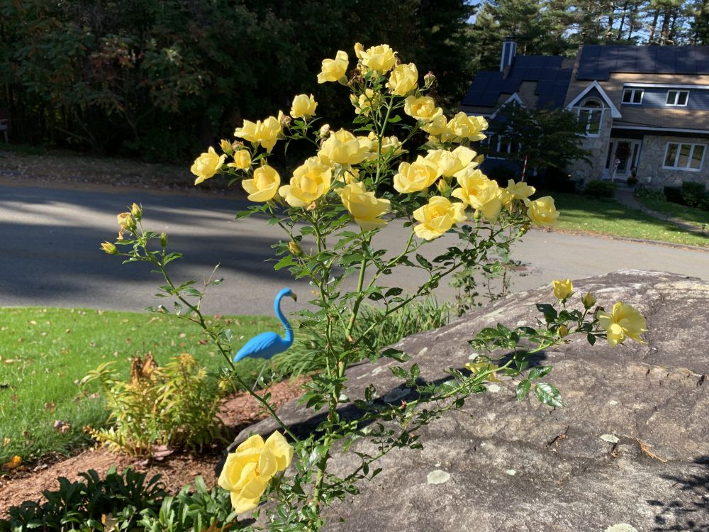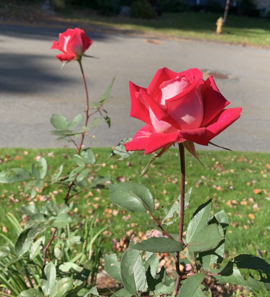 红黄玫瑰盛开了一个夏季,霜降来临前作最后的告别