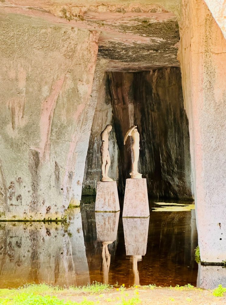 这些大型洞穴,从曾是关押犯人的监狱成了雕塑艺术的天堂,有不少大型石雕和铜像供人观赏。再往前走,是另一个古代剧场,叫锡拉库萨罗马圆形剧场(Syracuse Roman Amphitheater)。来此游览,三个主要景点各有特色,希腊剧场被修复,罗马剧场却荒芜,天坑天堂很酷。
