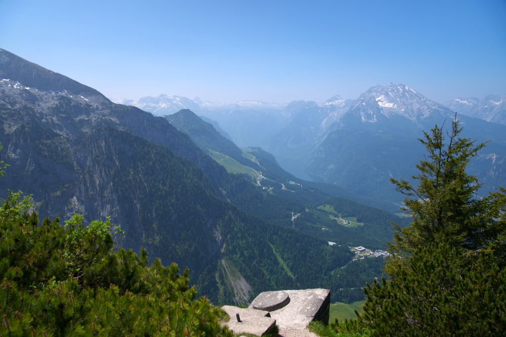 鹰巢的航拍照片(来自网络)。身处鹰巢时并不觉得,从这个角度才看出它的险峻。当年如果派人来这里斩首或展开"橡树行动"(德国党卫军在意大利营救墨索里尼)应该难度极高。在鹰巢上沿步道走到山头看到下图中的风景。