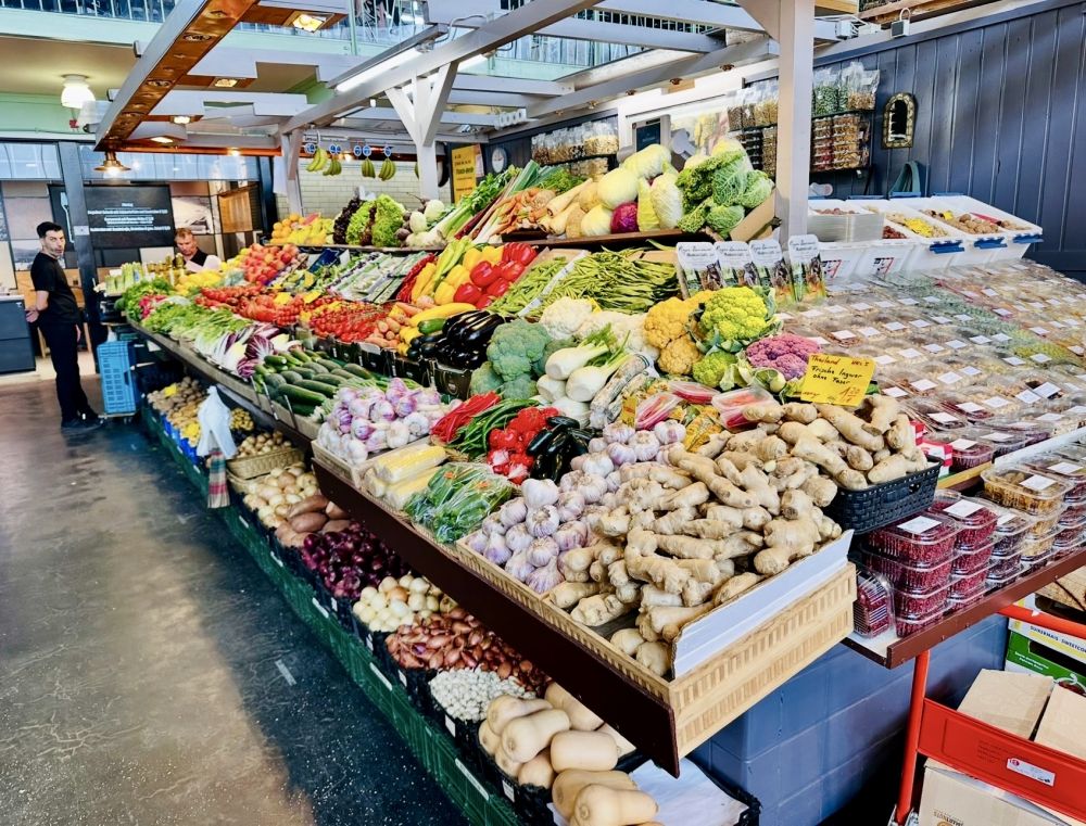 离这个教堂不远的地方是法兰克福有名的菜市场(Kleinmarkthalle),有60多家摊位和咖啡餐厅,出售各种杂货,以及鲜花、葡萄酒和各种熟食。