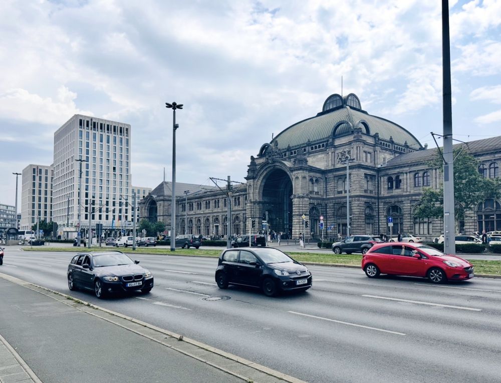 极偶然的机会,以纽伦堡车站大楼为背景,拍到了宝马,大众和雪铁龙三款欧洲车并驾齐驱的镜头。其现象也暗示欧洲人的贸易保护,在这里美国和日本车占比不高。车站看上去古老,实际上是二战后重建的。纽伦堡的大部分建筑在战火中焚毁或炸毁,老城中心的许多建筑都是按原样重建或修复的。