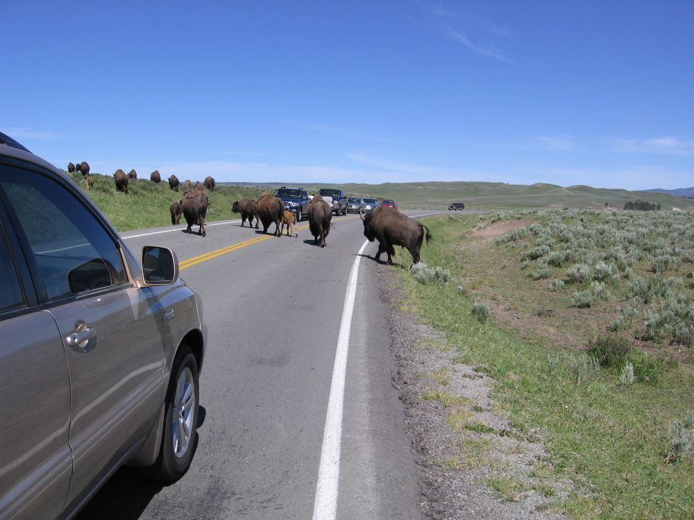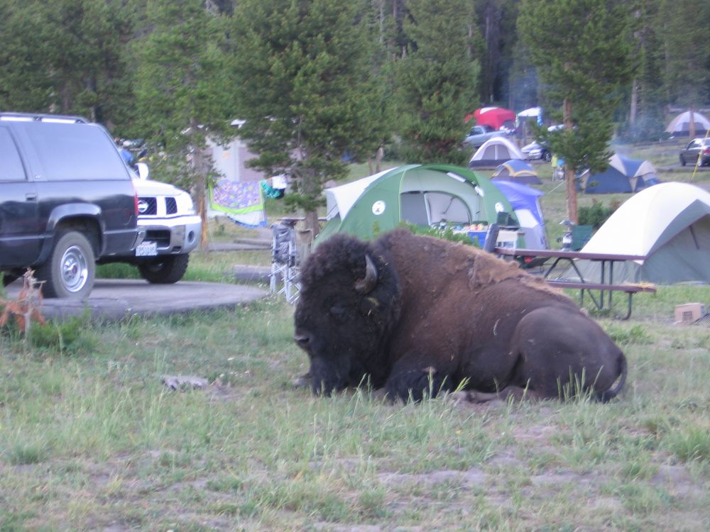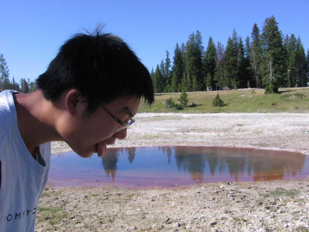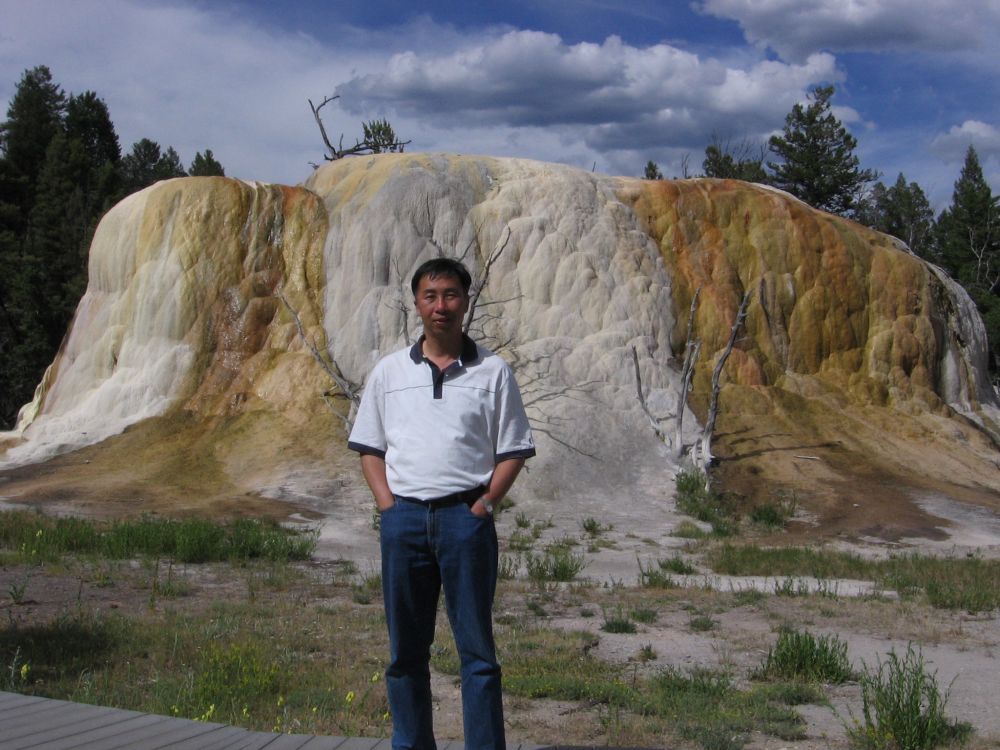 Day 2  Get up 7:30am. Set out 8:30am. Get back to Highway No.90, and go to east continuously. At lunch time arrive Livingston, a small city. After short rest, turn to Highway No.89 southward. About 2:00pm finally reach the North entrance of the Yellowstone National Park. After driving about 2 hours in the park, we found the camp ground, set up tents and enjoy the BBQ.