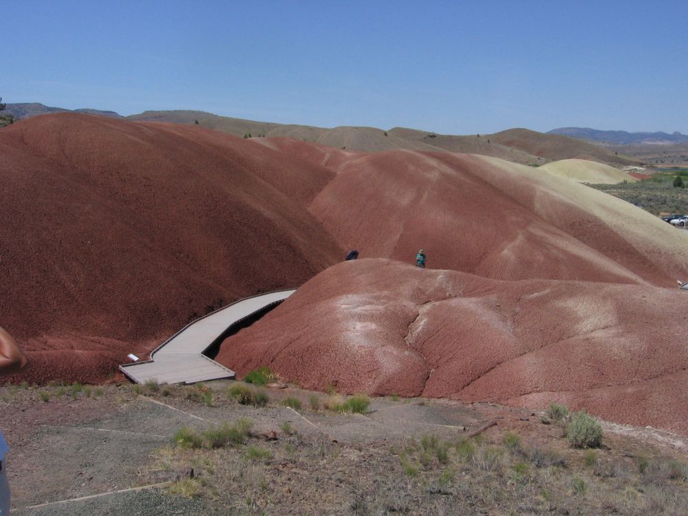 Get up 7:30am. Back to Highway No.84, drive about 30 min, arrive city of Ontario, on east boundary of Oregon State. Go to the Info centre in rest area and ask for a detailed map which shows you how to get to Highway No.26. Otherwise you will get lost. Along the highway No.26, drive west towards. At lunch time arrive Sheep Rock of “John Day Fossil Beds” which is another main destination of our trip plan. After visiting the Museum, take the suggestion from one of their employees, and drive continuously to Painted Hills of John Day Fossil Beds to see a breathtaking scenic view. At 3:00pm, leave Painted Hills.