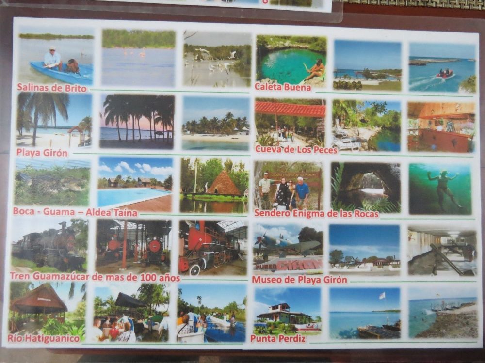 图中10个红色名字是她家周围的景点和潜水点。潜水都是一大早出发的,我们中午到达,已经不可能了,必须第二天去。下午的活动安排,根据她的介绍,我们选择了去Sendero Enigma de las Rocas,一个尚未开发的原始森林。坐马车去,每人15CUC,可以在一个天井里游泳。但事实证明并不值得去,所以不建议大家去这个森林。