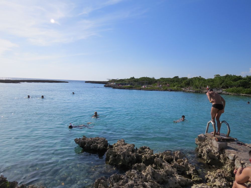 推荐两个值得去的玩水的地方,每个地方都离我们住的地方不远,开车要10多分钟。里面全天提供自助餐,各种酒水免费。可以下水游泳或Snorkeling,岸上有草棚和沙滩椅,可以晒太阳,看落日晚霞。价格只有15CUC,超值享受。自助餐只到下午3点,如果你3点以后去,就没有饭吃了,但有酒水,价格每人5CUC。房东给我们安排车,接送往返共10CUC。