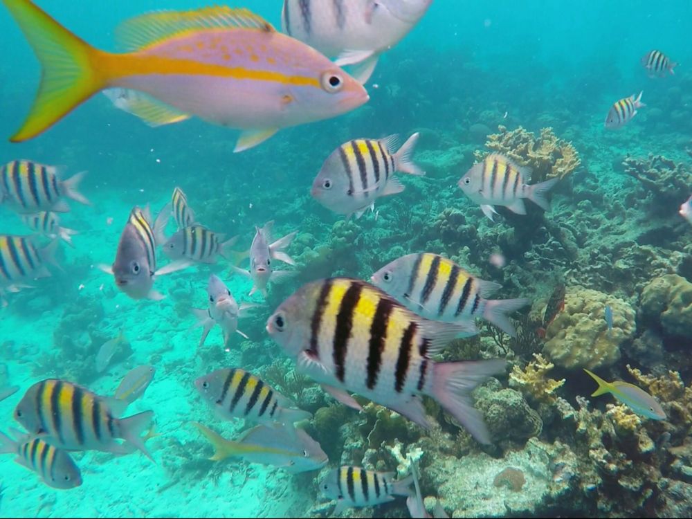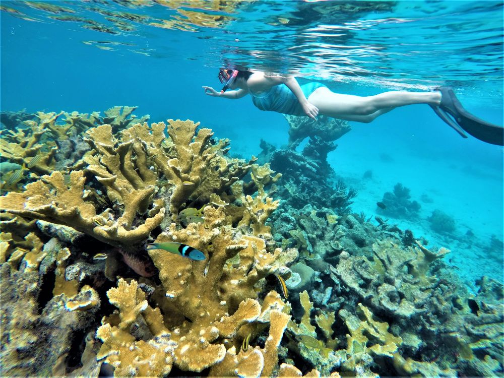 之所以对玩水如此狂热,是因为永远也忘不了第一次在墨西哥海里玩浮潜(Snorkeling)时的感受。戴上潜水镜和呼吸器,低头进水里一看,啊!一个绚丽灿烂、五彩斑斓的世界瞬间展现在眼前,那么多漂亮的鱼儿在欢快地畅游,穿梭于美丽的珊瑚之间,一片生机勃勃的景象。原来,只隔了一层水面,就是另一个世界呀!我们看不到的东西,未必就不存在!以前在海边,看到的只是汪洋的水面,你可曾想到,就在水面下,就是另一个充满生命的世界,只要一低头,就能看见它! 朋友们,如果你不想背着气罐潜水(Scuba diving),那就去浮潜吧 (Snorkeling)!浮潜是一个非常简单、人人可以操作的水上运动,一旦开始,你会从此乐此不疲,上瘾了。