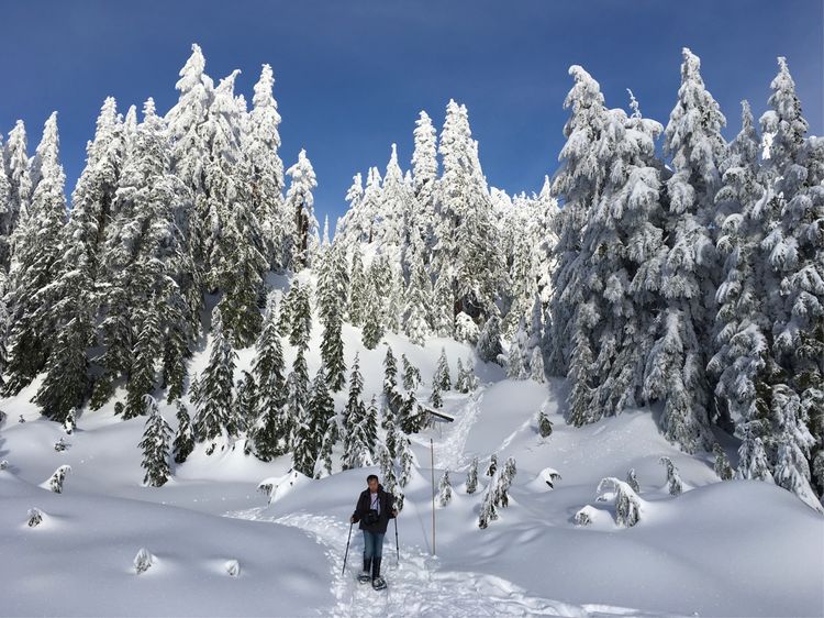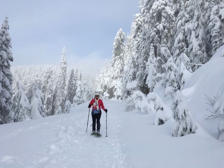 温哥华周围的三个滑雪场,Grouse Mountain,Cypress Mountain,Mount Seymour,都有从容易到中等难度的 Snowshoeing Trails,而且还提供出租雪鞋的服务。如果你是旅游者,你可以开车到那里去租一双雪鞋,体验雪地里漫步赏景的经历。