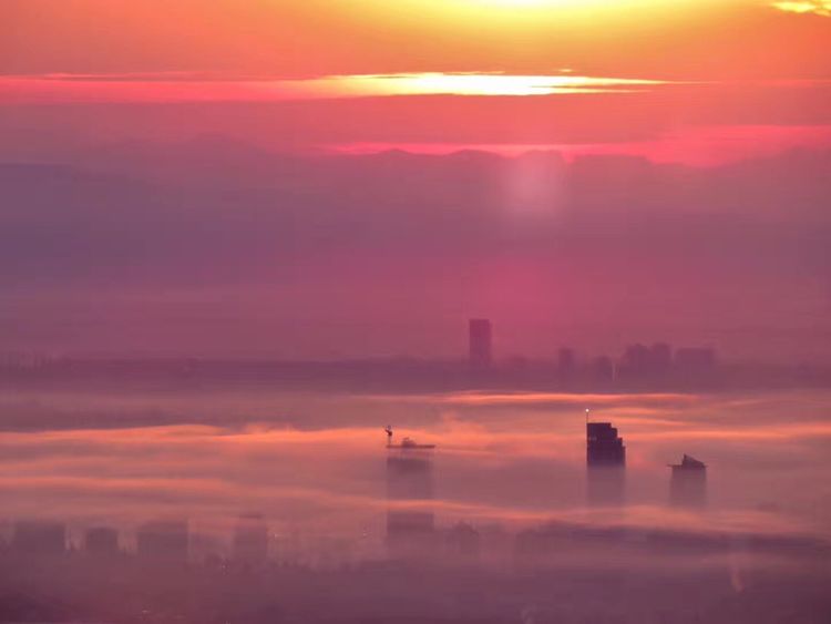 爬山的时候还都是大雾,到了山顶就晴空朗朗。