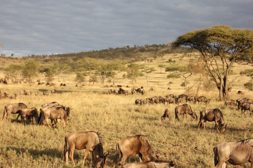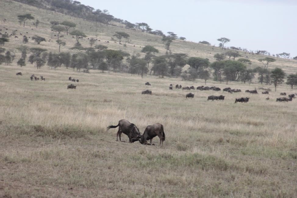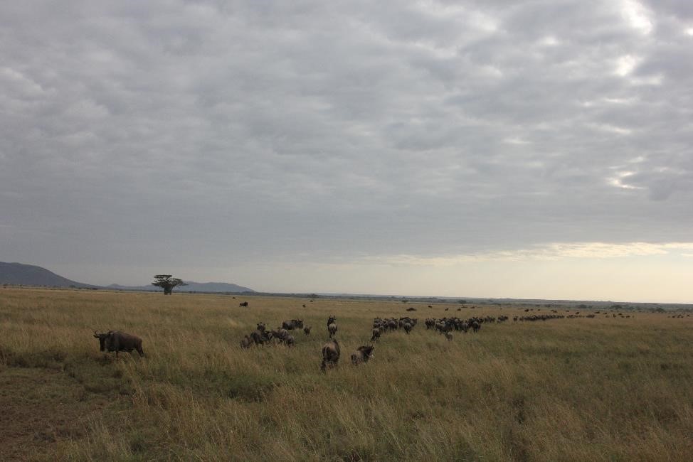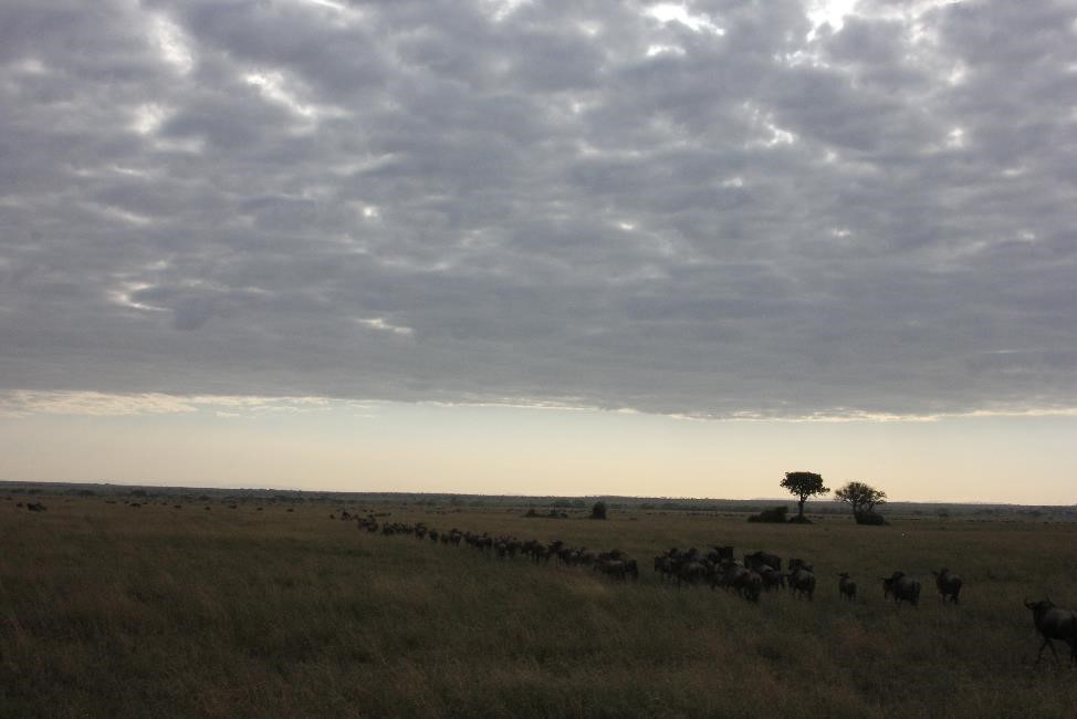 我还很想知道哪里是他们迁徙的起点, 哪里是牠们迁徙的终点,牠们的长征何时结束? 其实, 牠们的迁徙, 既没有起点, 也没有终点,因为牠们总在移动, 总在迁徙, 五月份离开赛轮盖提去往马赛马拉, 11月又会回来, 年复一年, 永无止境。 哪里有雨水, 哪里就有嫩草, 哪里就是目的地。气候的周期性变化和雨水的来而复往, 就是牠们的行军令和迁徙的原动力。