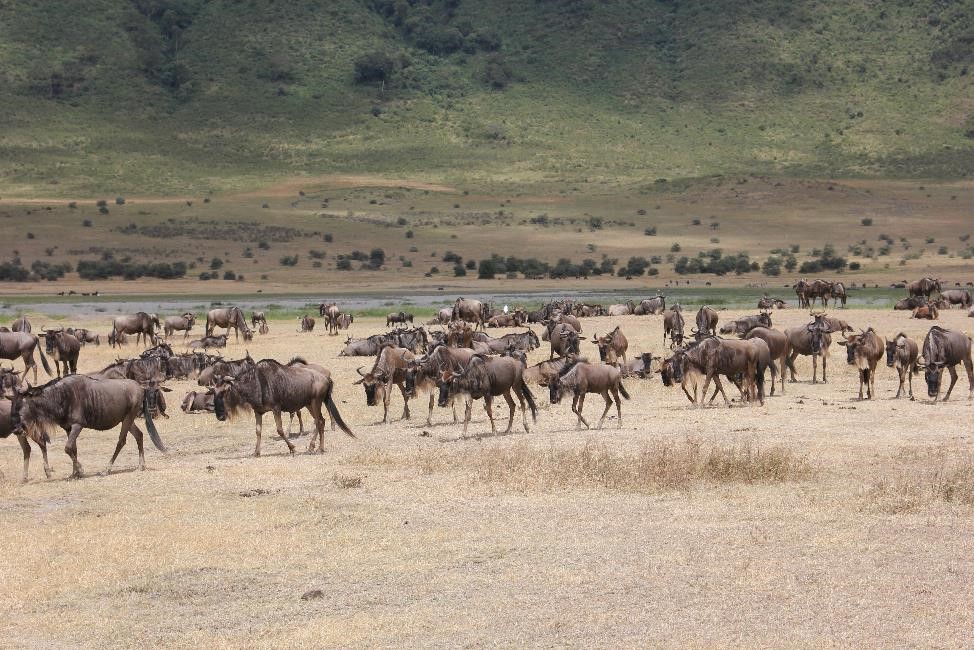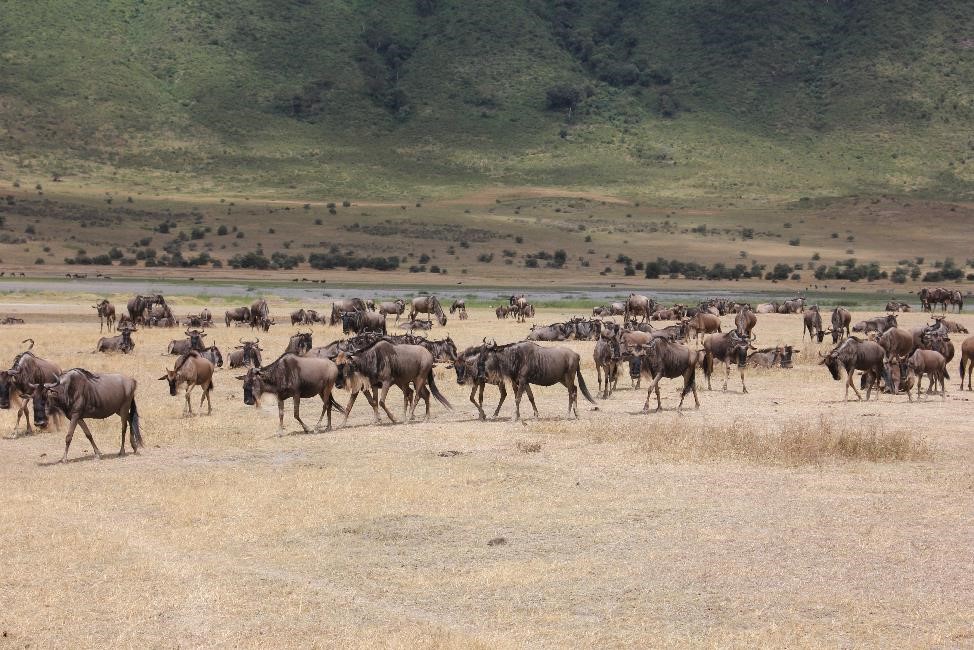 角马是一种不停在迁徙的动物,他们每年会从赛轮盖提大草原迁往维多利亚湖方向,以及迁往肯尼亚的马赛马拉方向。 总之, 角马们总在不停的迁移,从不停止。 面对数量达百万的如此庞大的角马群体的迁徙,我不禁会问, 谁是牠们的总指挥,谁在带领牠们迁徙,牠们是如何知道如果坦桑尼亚是干旱季节的话,马赛马拉就是雨季,如果马赛马拉也是干旱的话,牠们就迁往维多利亚湖方向(维多利亚湖是世界上第二大淡水湖)。 第二年又是谁指引牠们迁徙回来。它们是如何知道这些的。牠们是如何得知远方有雨水有嫩草的? 这些,都是谜。当然,我想, 牠们的迁徙是因为几十万年的生活和进化教给牠们的, 只有这样, 牠们才能生存下去。
