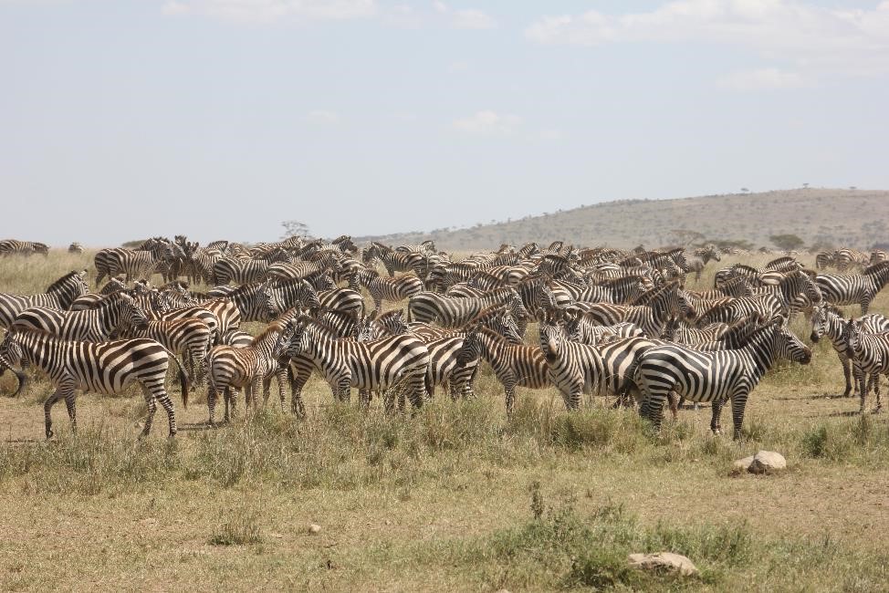 来到坦桑尼亚的国家公园,看到最多的就是漫山遍野的斑马和角马 (Wildebeest). 斑马和角马 (Wildebeest)的数量之多令人吃惊,数量众多的斑马和角马与赛轮盖提那金黄色的草原形成了一幅幅美丽动人的油画,其壮阔和美妙是我无法用语言来描述的。 据我们的司机兼导游Rama 说,坦桑尼亚大约有四十万左右的斑马和大约一百五十万左右的角马,这是一个何等庞大而壮观的动物群体啊。