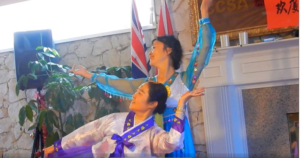 舞蹈是大家最爱看的节目。大联欢上,陈洁,李旋喜,陈幸沂,谢詠玫等演出了排舞“想着你,亲爱的”,杨少华,李旋喜,管秀风,罗维政等人表演了排舞“跳到北京”。曹月华女士跳了单人排舞“手心里的温柔”,她舞蹈动作确实表现出了温柔,很受欢迎。朱继云,李旋喜,陈幸沂,谢詠玫陶银妹等表演的帽子舞诙谐风趣。Cindy和郭乔娟老师表演的朝鲜舞跳的优美娴熟,跳出了民族舞的高水平表演。