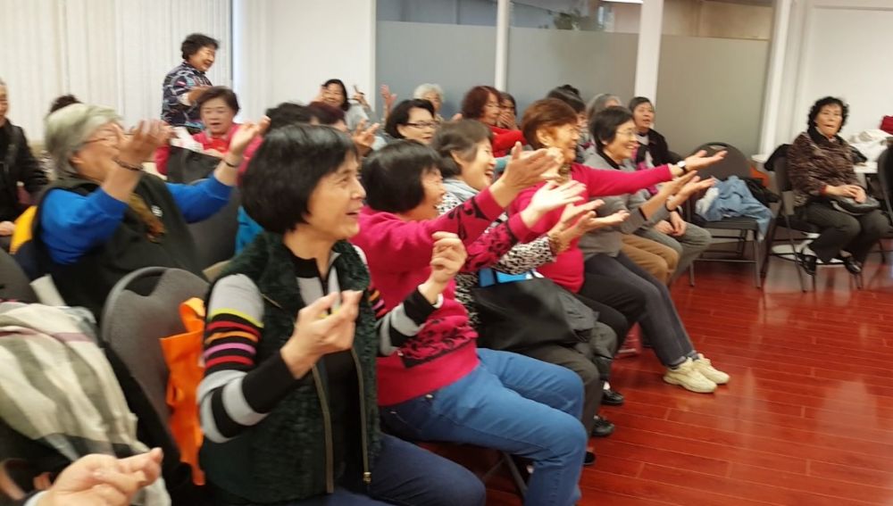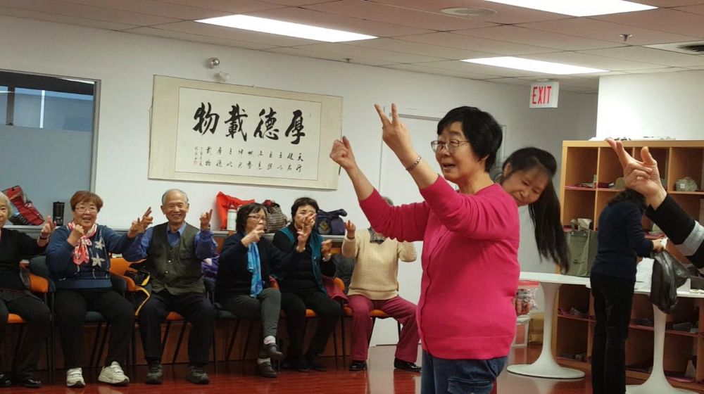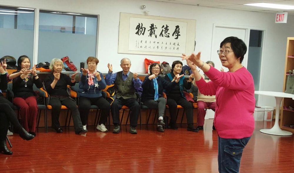 近一个小时的群众性排舞过后,会长严佩明老师向大家推广“手指操”。