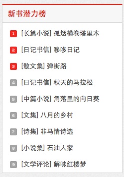 8/2015上海作协《华语文学》VIP上架, 3/2016进入新书潜力榜