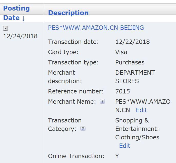 早上接到信用卡付费通知,告知需要付帐。非常纳闷我没有用那个信用卡,哪里会有欠帐?一查账单,钱是在一家大的跨国网站YMXCN上花的, 购物地址是北京。 可是我的YMXCN账户里面没有任何记载这笔花费。捉不到贼,无奈之下要求信用卡公司 dispute 这笔花费。