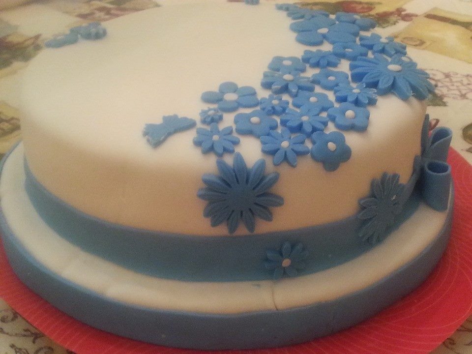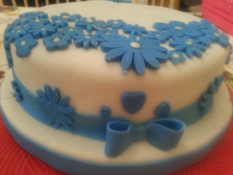 我做的蓝帽翻糖蛋糕,三层2X12INCH,1X14INCH. 请各位高手指点。