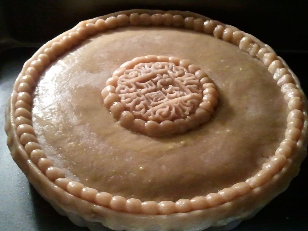 安娜去年中秋节为教会特制的大月饼 SIZE 9 INCH。请亲们指点 包装照是这样子的 还有五仁芋头月饼