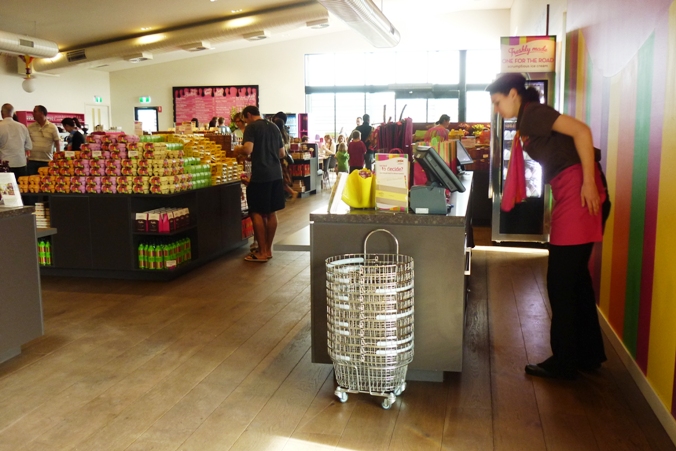巧克力工厂坐落在一个山坡上,靠近雅拉河谷的中心Yarra Glen 的边上。景色秀丽, 坡上是葡萄园,葡萄架此起彼伏连绵不绝,甚是壮观。