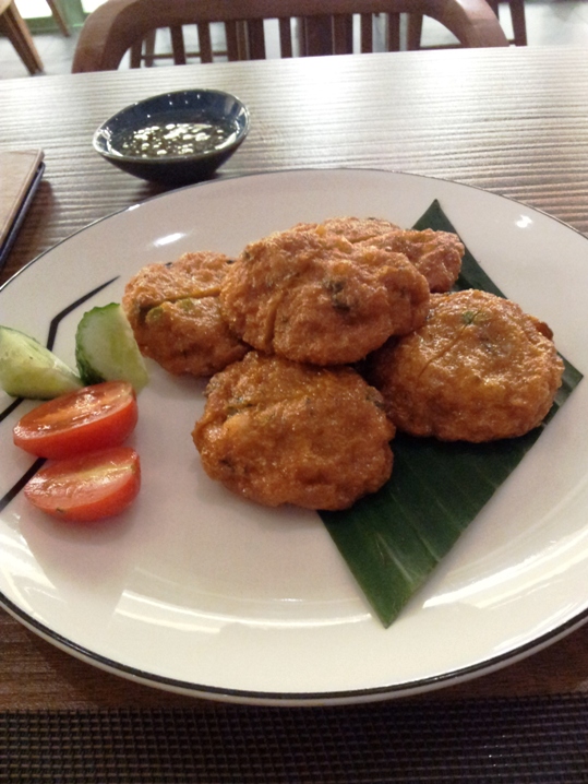 某日,在上海五角场书城闲逛。我曾经在泰国居住过一段时间,所以很喜欢泰国菜。于是逛完后就慕名去了附近的某泰国饭店,看完菜谱后有些失望,许多菜都被改良过了。但有个小碟却是我当年喜欢的,那就是今天要来山寨的泰国鱼饼。于是就要了这个鱼饼,配着啤酒就开吃了。 尽管味道不够浓郁,但已足以钩起我对泰国的美好回忆。 下图就是这个饭店的出品。