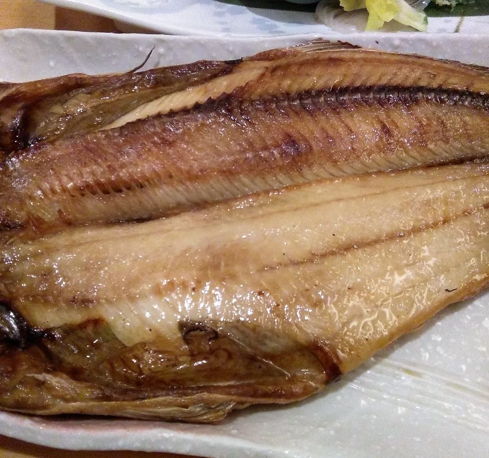 第二天晚上函馆山回来又去那家店晚餐,不过这次是预约的。 这次点了鱿鱼撒西米,函馆著名的活鱿鱼做的。还有天妇罗和烤鱼。活鱿鱼撒西米是第一次吃, 脆而清爽,口感一流。 我一直不太喜欢吃天妇罗,因为太油腻。 这次吃后完全颠覆我对天妇罗的看法,他们做的天妇罗不但不油腻,还相当可口。烤鱼,用的是一种叫遠東多線魚的鱼,整个北海道都可以捕获。这种鱼油脂丰满, 一般做成鱼干再烤相当美味, 是一种北海道非常普遍而价廉的鱼。这盘烤鱼的味道上佳,分量也相当大。