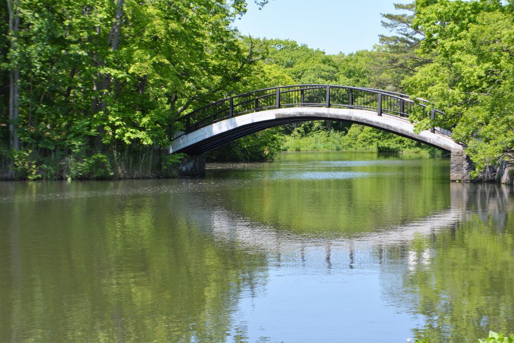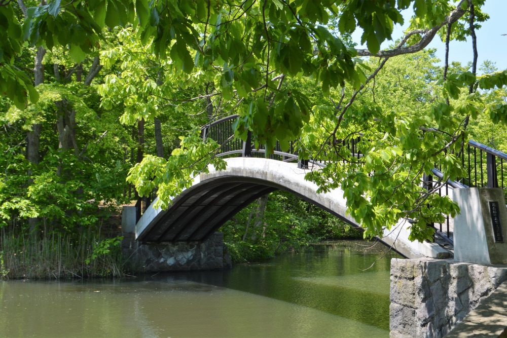 大沼公园在函馆七景中排名第七。公园有点野, 走走看看景色不错。 大沼国定公园是一个大自然乐园,三个湖泊中,各有小岛点缀,水面上驹岳活火山峰峦倒影相映成画。驹岳山是当地的地标,下面的照片中远处的高山便是驹岳山。公园小桥流水, 曲径通幽。