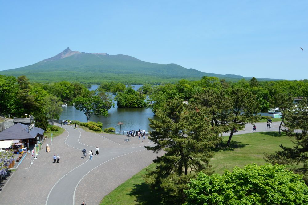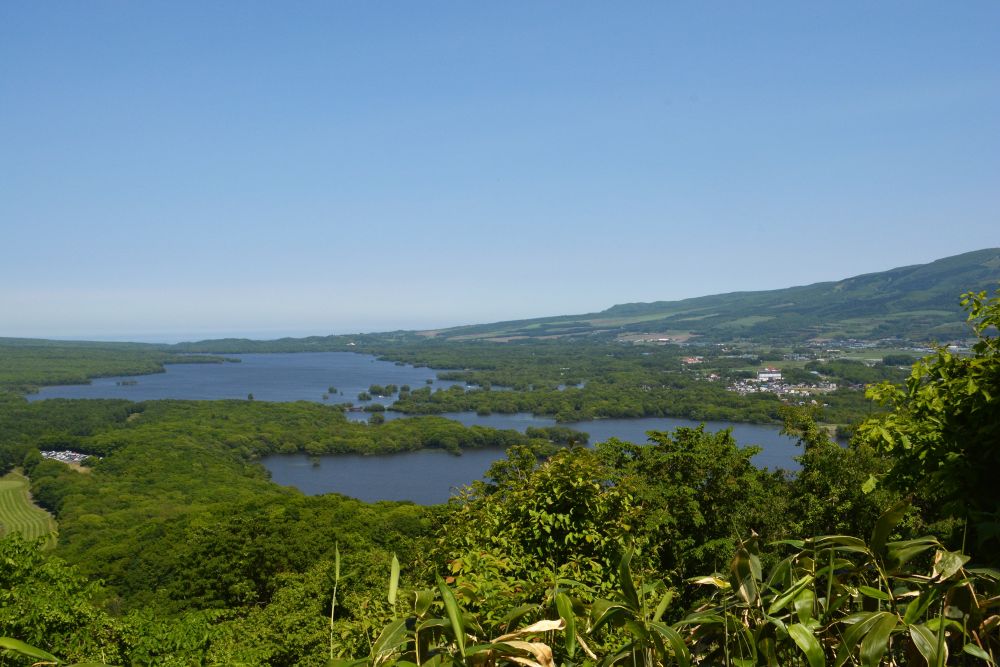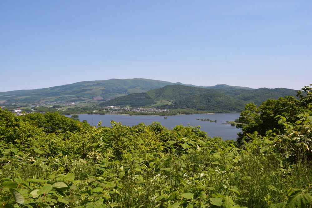 大沼公园旁边有座山, 叫日暮山, 上面有个日暮山展望台。 展望台上可以从另一面观赏大沼湖,一样的湖 别样的景, 外带周边的丘陵地貌。