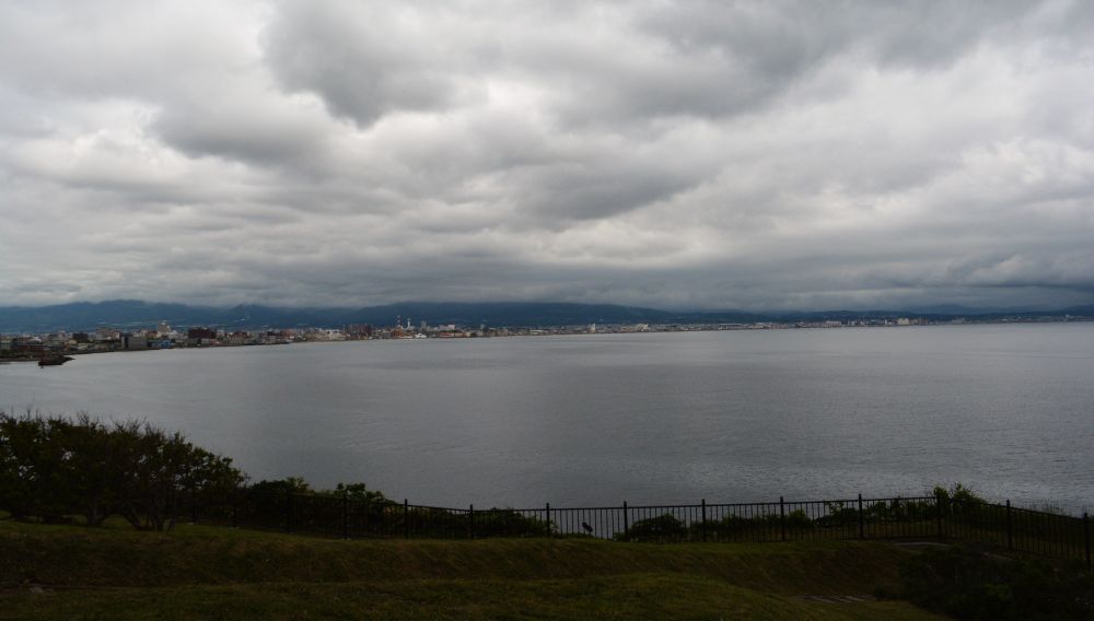 函馆除了七景, 其实还有个去处也是不错, 叫立待岬。没有拥挤的人群, 看看蓝天听听大海(津轻海峡)。天气不好没有蓝天, 但还是可以看见函馆湾和函馆市。