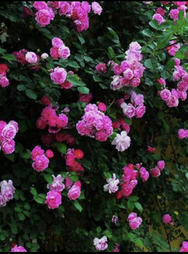 躲在寻常百姓家的角落或者倚墙而绽的是蔷薇花,这花尤其最惹人怜爱,在千茵万郁的绿叶中它开得尤其低调优雅,它不像芍药花簇拥在一起,花朵也要比芍药花个头小些,但却像邻家女孩一样开得那样的自然和怡静,好似一个一直都在浅浅微笑的姑娘一样歪着脑袋倚在墙壁上,那浅笑里夹杂着甜美的声音,好像让你总想停下脚步多看它几眼,或者冲着它的模样留下剪影来,古人曾有“朵朵精神叶叶柔,雨晴香指醉人头”来形容它雨过天睛后的醉人芬芳媚态。不过没有雨的日子,它仍然会莞然含笑的静谧守候在门前屋后。那嫣笑弄巧的样子似乎只为情之独寄的赏花人而绽。