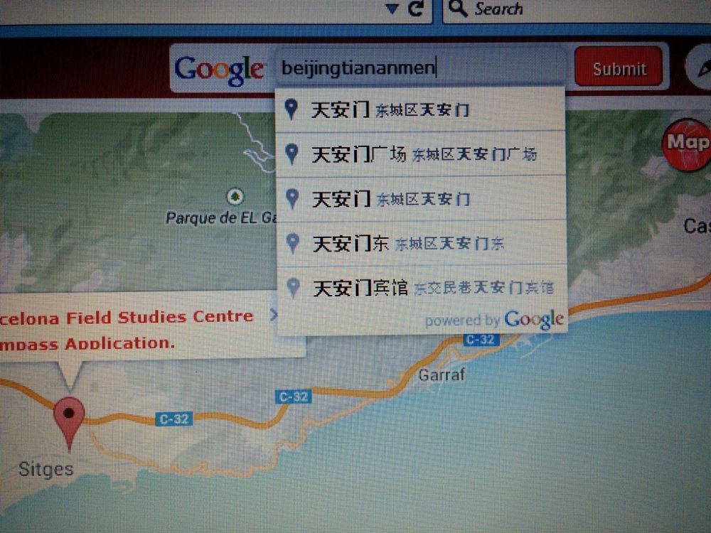 例如,我们想找北京天安门,输入中英文均可。然后点击:Submit