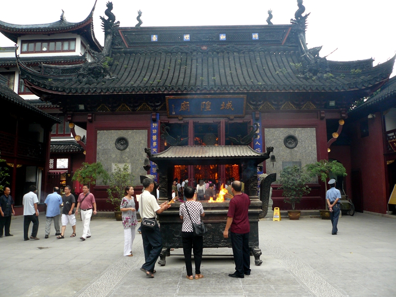 一直想去拜谒上海城隍,缘自学佛之后对城隍这一概念的了解和佛教上关于上海城隍的一则真实故事。城隍这个概念最早源自《易经》,泰卦上爻爻辞曰:“城复于 隍,勿用师。”城指城墙,隍指城墙外围的壕沟,有水为沟,无水为隍,所以城和隍都是用来起保护作用的。复者覆也,倾覆之意;师指战争,打仗。原文的意思是 说,一个城市的城墙倒了,倾覆于隍沟内,这个城市就失去了防卫能力,这时如果勉强用兵抵抗,只能做无谓的牺牲,投降反而是一个比较好选择。