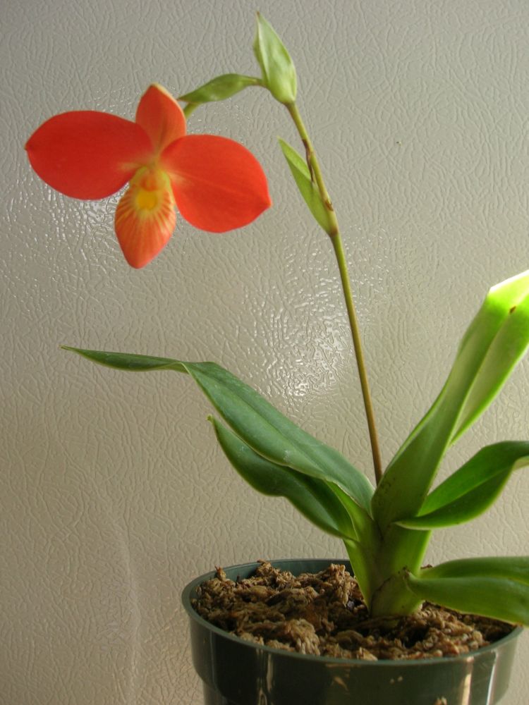 美洲拖鞋兰近三十年很火。1981年在秘鲁发现了Phragmipedium besseae,被称为真正的红色拖鞋兰, 鞋口带金黄色的条纹,因为在这之前无论美洲拖鞋兰还是亚洲拖鞋兰没有一种是真正红色的。由于进口条例的限制,多年不能直接引进植株,而是借助花粉与美国已有的美 洲拖鞋兰杂交,以满足爱好者。2002年, 还是在秘鲁,又发现了一种奇特的美洲拖鞋兰Phragmipedium kovachi, 直到现在,美国农业部还没有解除直接进口的限令。顺便说一句,美洲拖鞋兰和亚洲拖鞋兰(在中国叫兜兰)形状相似, 但遗传上完全不同。这几年我收集到了Phragmipedium besseae的杂交种和原种。近期,又收集了Phragmipedium kovachi和Phragmipedium schlimii 的杂交种。