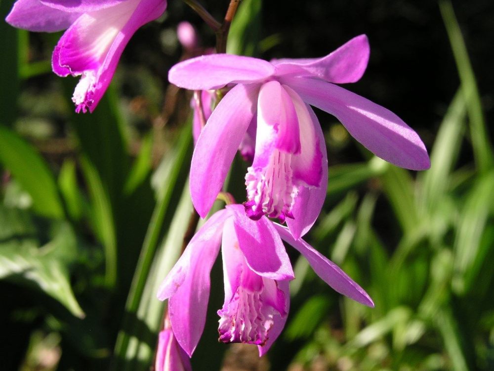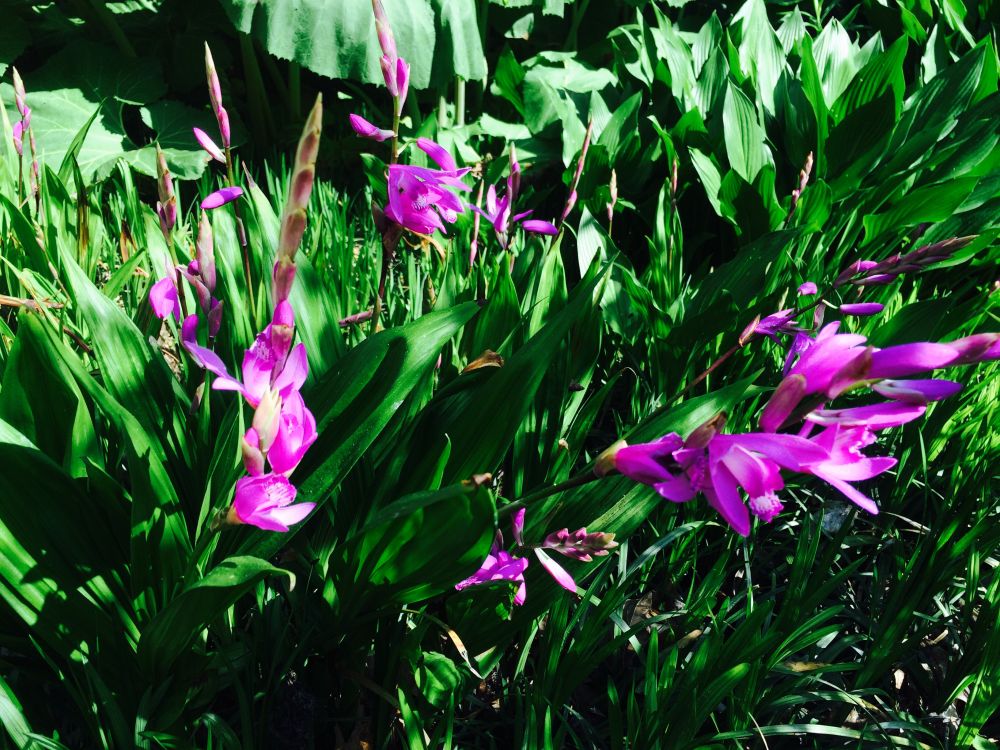白芨,有紫色的,白色的, 为地生兰花,适宜种在园边地角