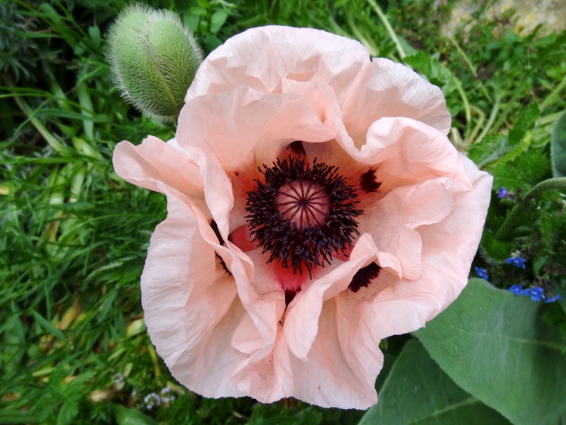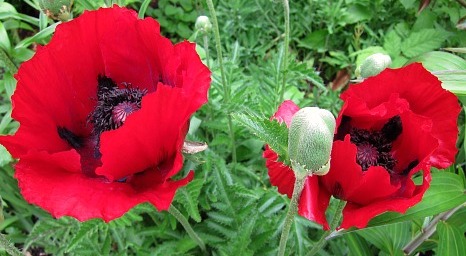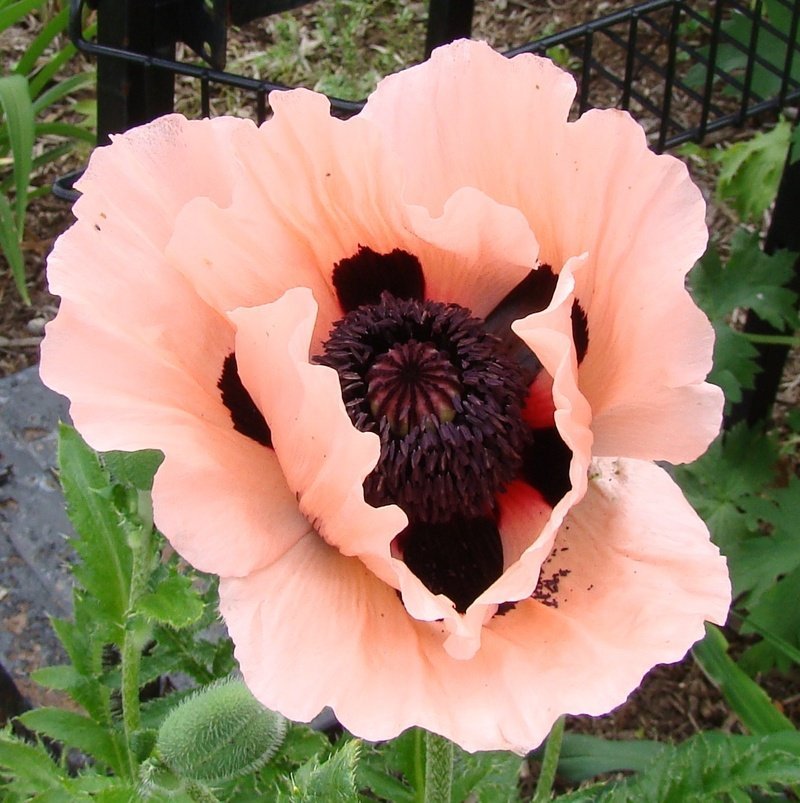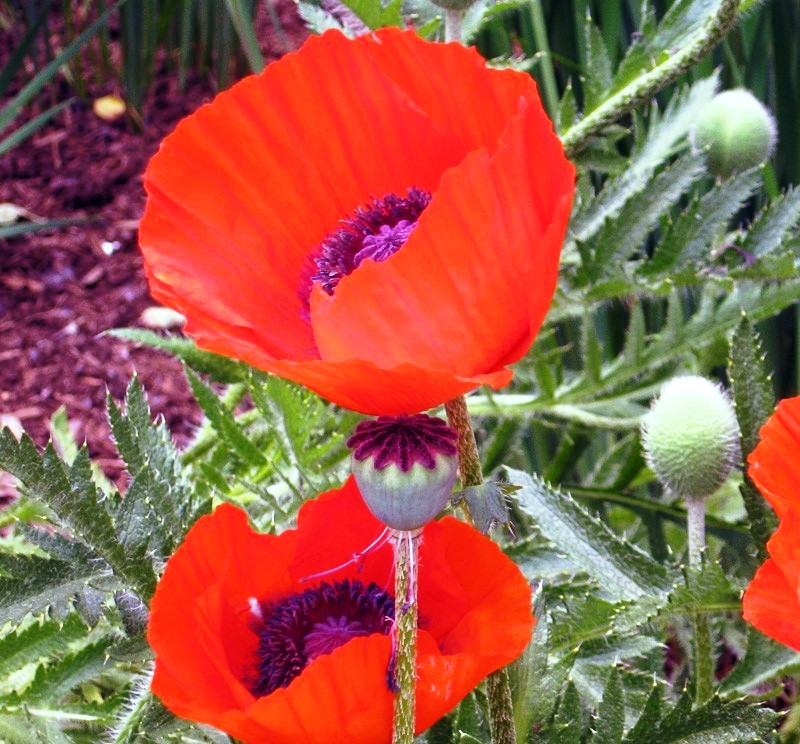 东方罂粟,或称鬼罂粟Papaver orientale(Oriental Poppy),分外美丽,与制作鸦片的大烟花不同,是多年生观赏植物。原来有一棵Papaver orientale‘Flamenco Dancer’,长得茁壮,去年秋天移到另一个房子后院,同时又买5棵种在一起。