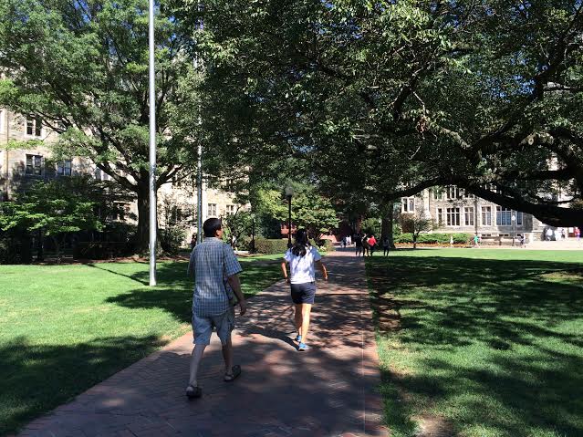 这是去年夏天去东部参访学校,匆忙行走在校园里