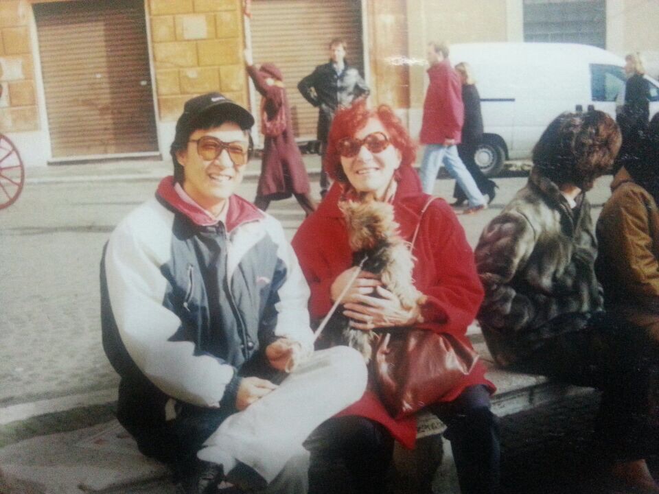 1997年在罗马市的“西班牙广场”和妈妈合影。
