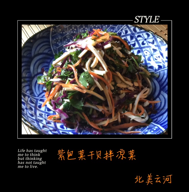 紫包菜营养价值很高……,突然发现用干贝(dry scallops )做中式蔬菜色拉味道也是一绝……。《紫包菜干贝拌凉菜》清爽鲜香余味悠长,轻松带给你味蕾无限美好享受!