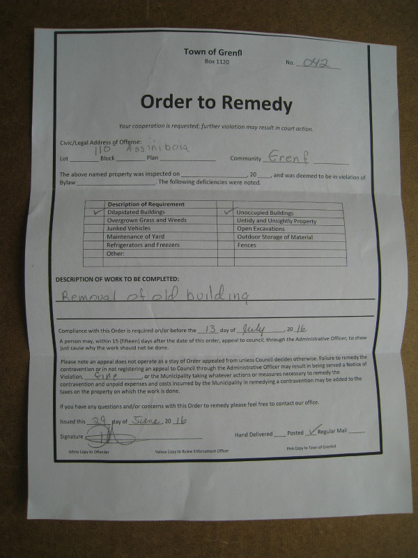 今年4月,村上小镇的办公室给我家发了一个通知,说我家镇上出租屋旁边那幢破落的老木屋,夏季暴风雨时可能会倒塌,对两条腿的和四条腿的构成威胁,所以,要求我们把这个“太上皇”(Dilapidated Buildings)给打发走,限期完成,否则,罚款伺候。