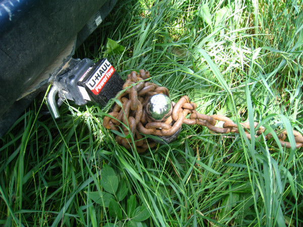 缓缓前进车子,等到把铁链拉紧后,先倒退半米,再踩油门往前冲。注意不要太猛,有30公里/小时的速度足够,以免把车子拉“脱肛”。