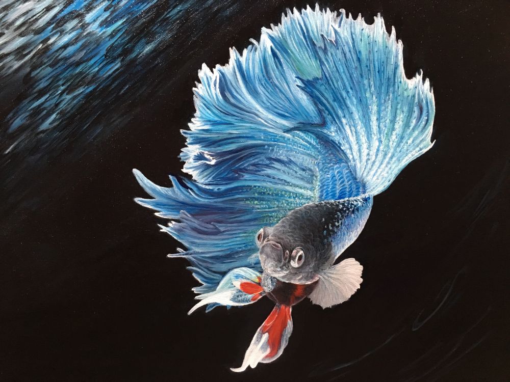 最近忙着带嘻嘻,有时间潜水没时间冒泡。前天看到圆导号召秀鱼,觉得这个秀要赶上。咱不属鱼但看鱼,最爱波士顿的水族馆。看到别人秀养鱼也幻想着,不过这念头还没捂热乎立马被领导扼杀了。不过一年前画了两条鱼,今天看着依然喜欢。之前秀过一次,如今为了赶潮流再秀一次,希望勿怪!儿子上周末回来烧的茄汁鱼,一边看菜谱一边忙活,厨房弄乱了但鱼是真好吃[
