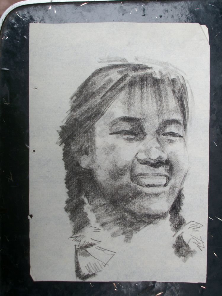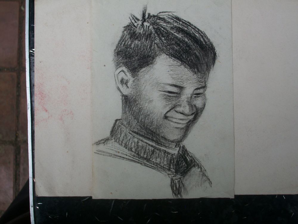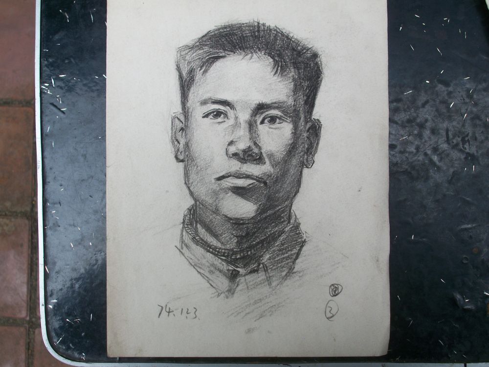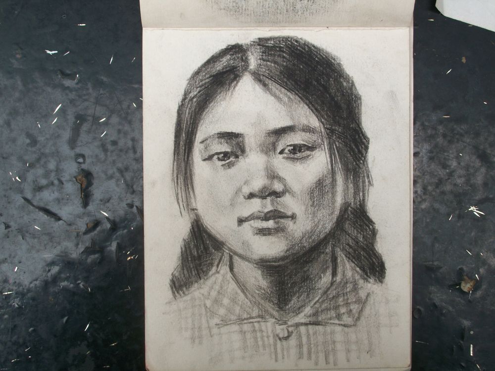 经过一段时间的临摹后,便开始练习人头了。当时已在村小学教书,有大量的时间可自由支配。那时愿意让我画人很多,自己的学生,村里的知青和农民兄弟都乐意让我画。我的画很粗,但基本上能做到快,几分钟解决问题,和准,所有的这些人头我现在都还能回忆起他们的名字。我从未把画送给画的对象。因是文革期间,脑子里也不存在任何去集市上画像挣钱的念头。