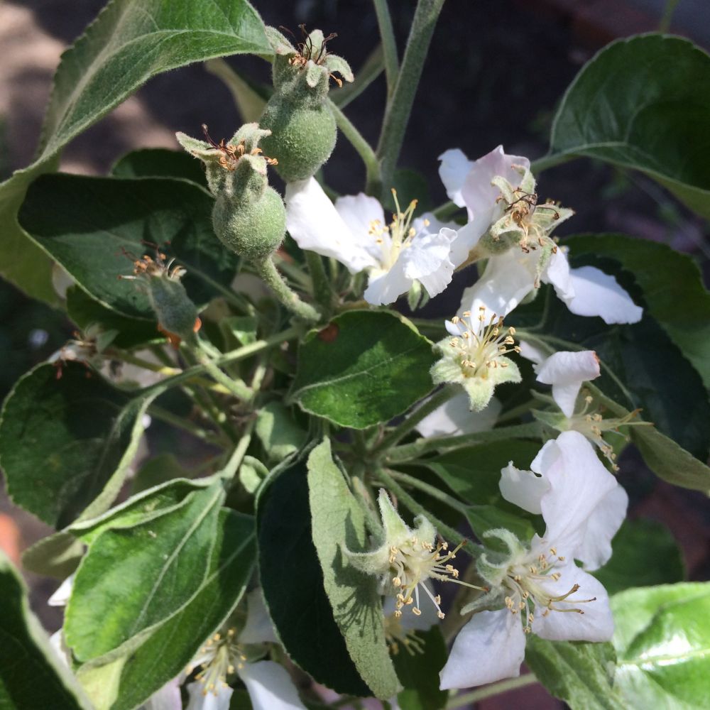 这是青苹果树,买来时正好看到网友秀如何修剪果树可以多结果子,好好的3根健壮的枝条被我剃掉,长得歪七八糟的,后悔不迭。阳光不足也是没长好的原因之一。