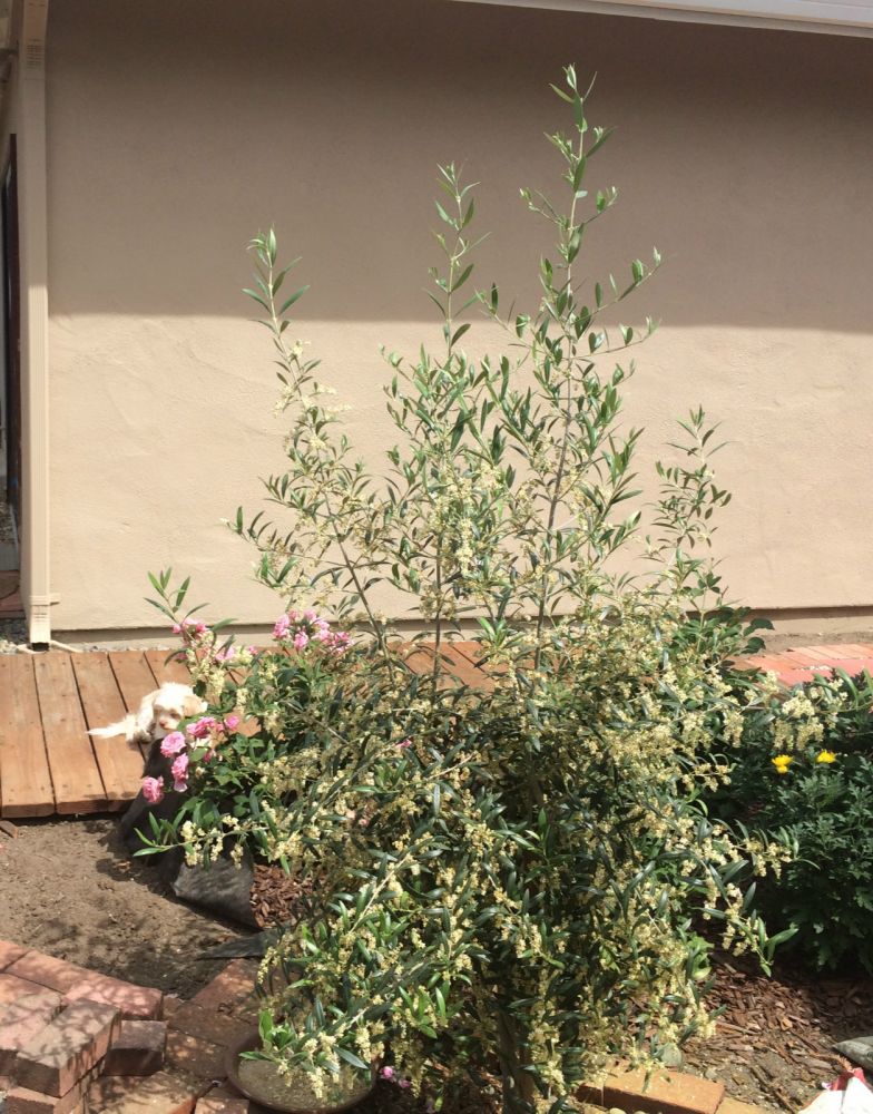 橄榄树!这是3棵拧成一股的可以异株授粉的小树,最高长到10英尺。