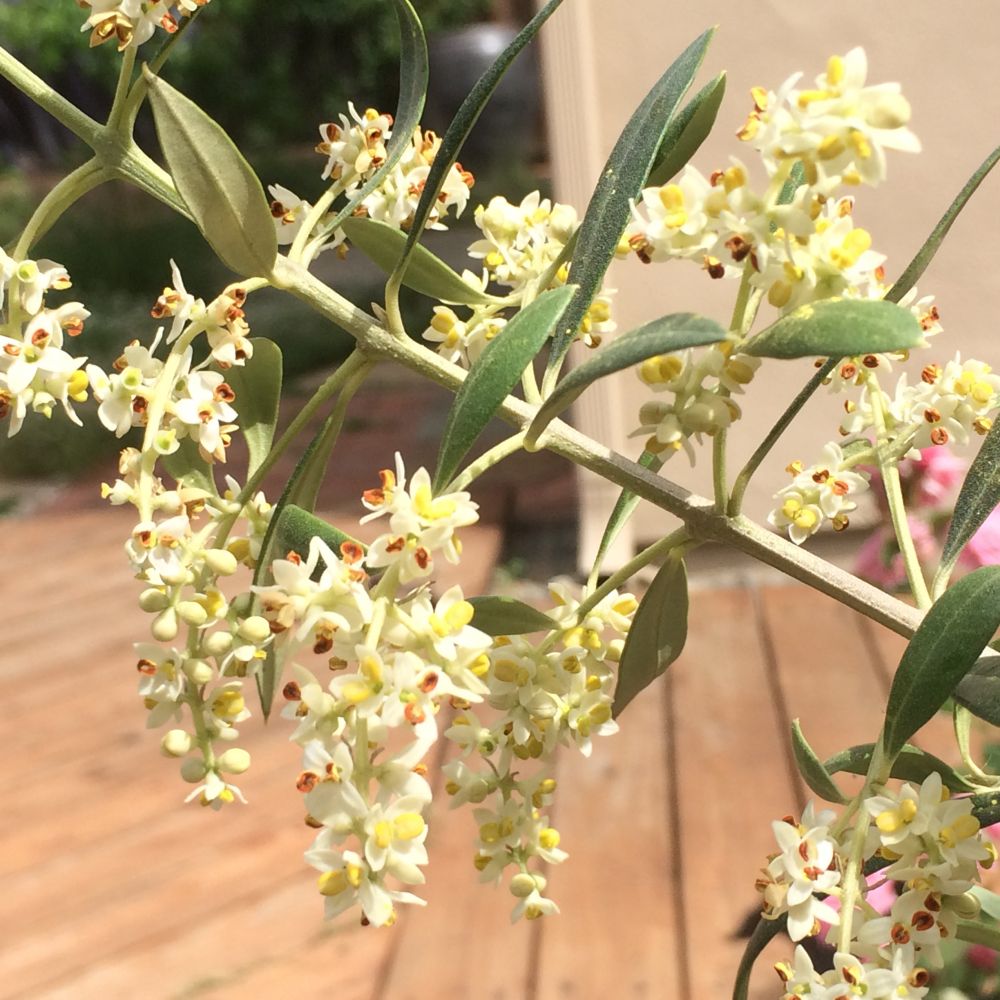 一年之后,满树的小花终于开了,花粉厉害啊,地上一层黄粉,橄榄丰收在望。