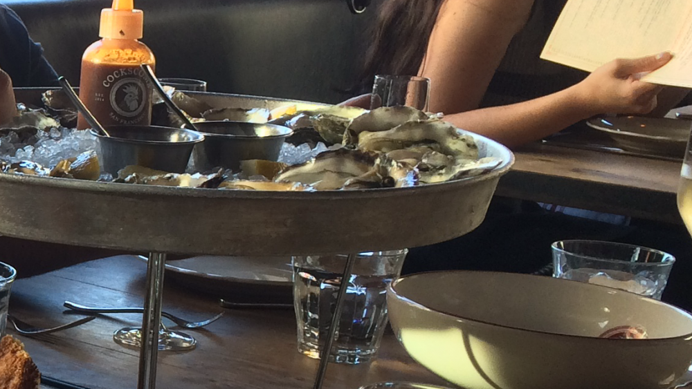 我们还是用Uber 车代步,local的司机熟练地在单行线之间穿梭,比自己开车方便多啦。吃饭的餐馆叫cockscomb, 所谓的新美国菜,据说主厨拿过 “Top chef "show 的大奖。餐馆外面在修路,推开门,里面有点拥挤,装修简单给人居家的感觉,有点像欧洲那些餐馆,餐桌几乎摆到门口了。上楼来,楼上也是满满的桌子和食客,都是年轻人。我们占了一张桌子,桌面是原木色,返璞归真的意思。