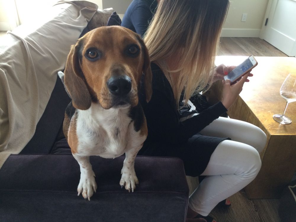 朋友家里有两只狗儿,都是比格犬。白脸狗女以前是在药物实验室被用来做动物实验的,有点后遗症。