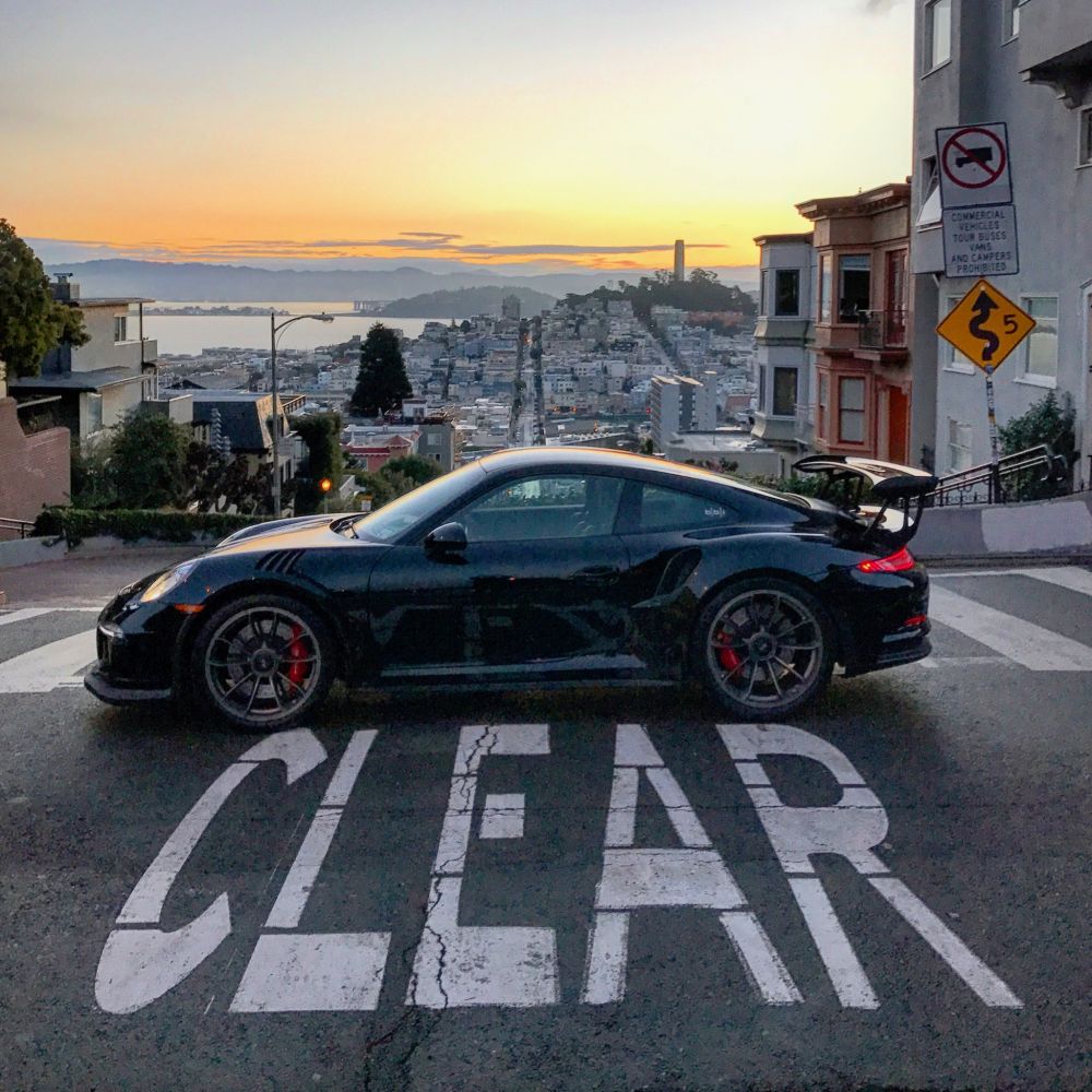 借来一张照片,是寿星女的老公给他自己的车拍的靓照,横跨lombard street ,是不是有点酷?