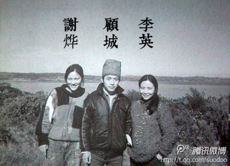 请恕我的直言不讳,对于一个靠撰写情感的当代“诗人”来说,行为的检点与人们眼中的世俗情操和准则似乎是个不可忽视又非常重要的因素!……就是这样一段荒唐三人行的不伦关系,导致了顾城杀妻悲剧的发生。他们之间乱七八糟的男女关系是偶然巧遇发生的,这却是必然导致凶杀、自尽严重后果的根源。由此看来,诗人有时候真的和“疯子”确实没有多大区别 !一般来说患有严重精神疾病,行为古怪可能做出疯狂、放肆行为的人,疯子就是疯子。而“诗人”在其吟诗作画时又有着很大的欺骗性,从表面上来看似乎还算是正常。但诗人内心却是极端扭曲不堪和痛苦挣扎的。他们活在当下的现实生活和心理扭曲的痛苦中,但却又要在纸上或是记忆里努力的想要留给世人另一番美好憧憬的蓝图!......尽管如此,在某个特定时刻,他们根本就无法摆脱和说服自己灵魂丑陋的另一面,更是一定非要接受谎言还原自我。或许这就是为什么,最后他只有用一死了之,才能逃脱现实生活的羁绊了!……