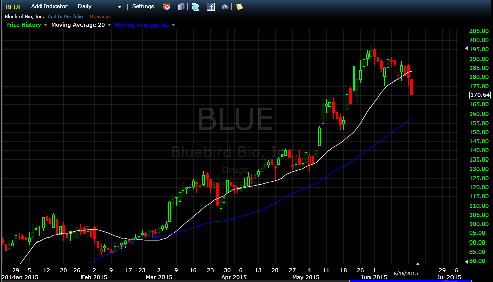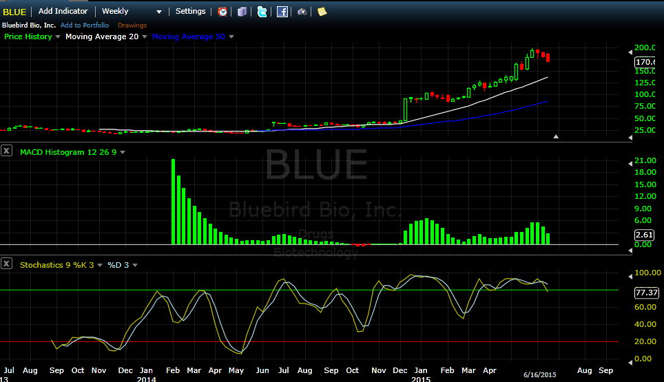 两条均线说的是MA20, MA50。很简单,趋势向上,做多。向下, 则空。交叉点为买卖点的判断依据。所以和罗威一样中短线的捣乱看准了也不随意进出。好,看看AAPL 和BLUE的两条均线。可以看出BLUE的乖离偏大,所以这几天股价下拉,AAPL比较勉强。乖离是他的第二个比较重要的阐述。