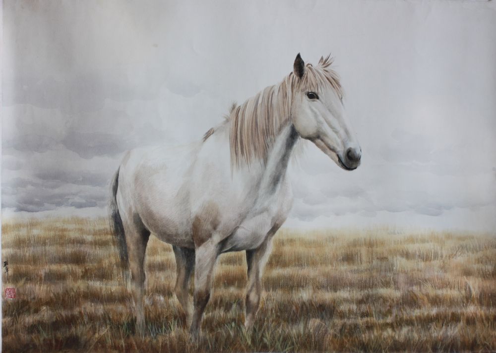 再来一匹马——水彩《苍茫时分》